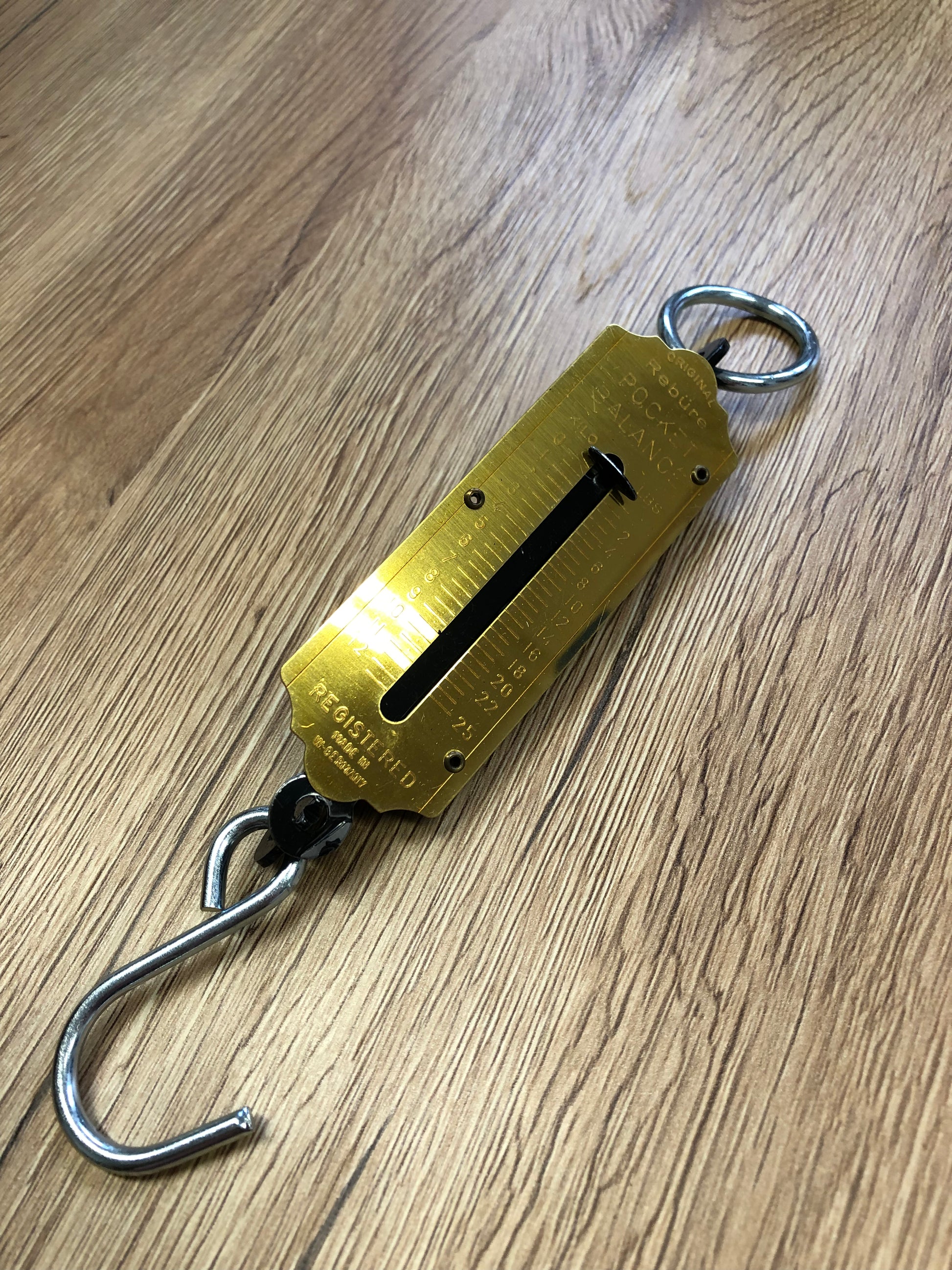 Mit Messing-beschichteter Skala für Messungen bis 12,5 kg.